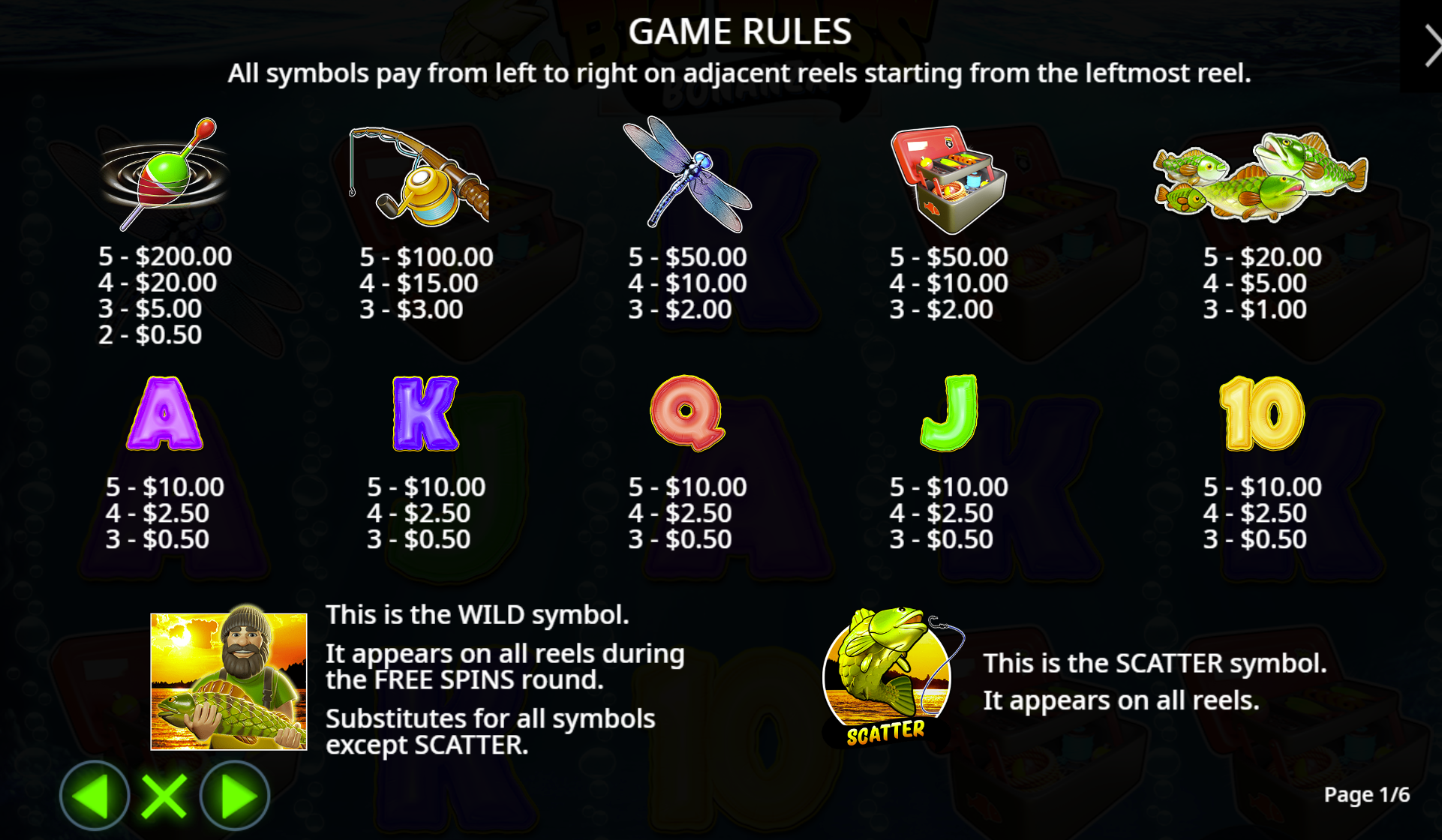 FeaturesFree Spins with Collectible Money Symbols, Fisherman Wild